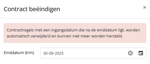 - Klik op ‘Beëindigen’ en vul de einddatum in per datum wijziging, bijvoorbeeld 30-9-2025.