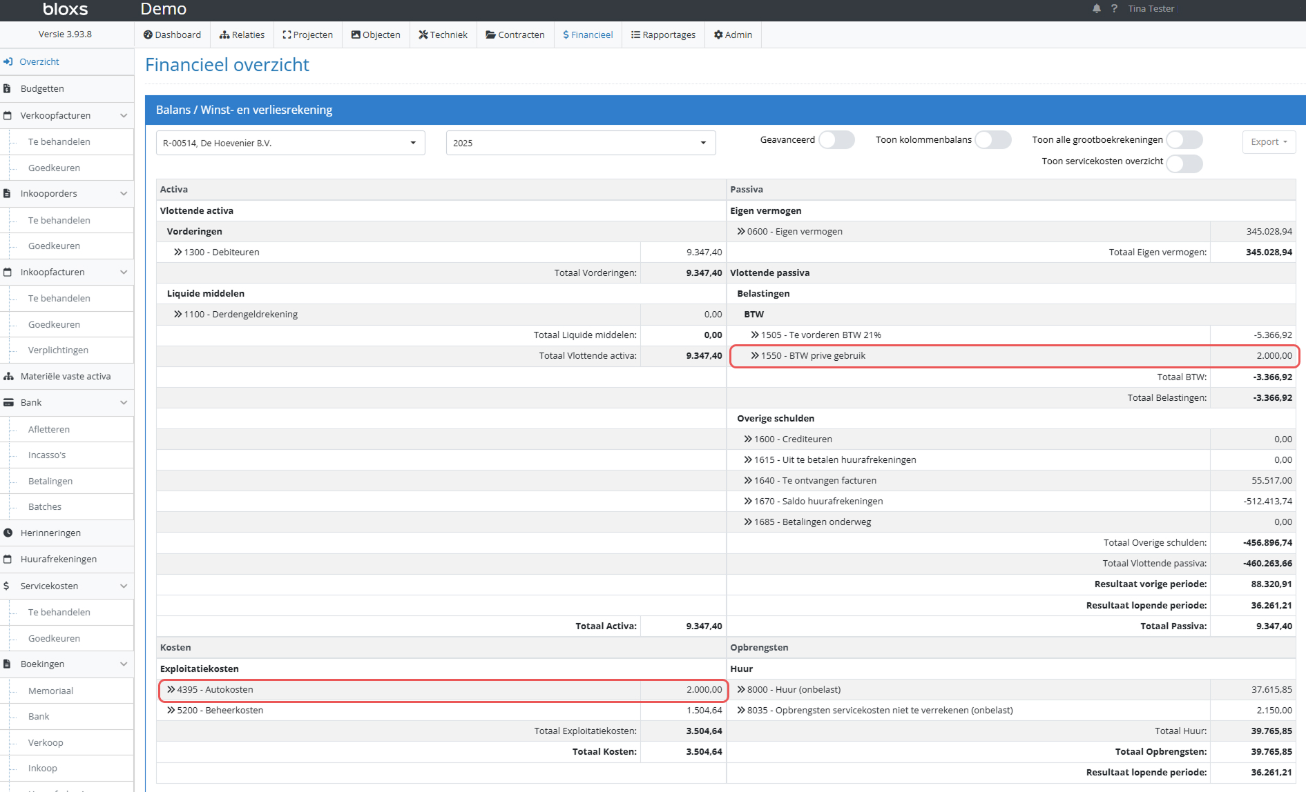 De tegenrekening is een kostenrekening (bijv. Autokosten of BTW Prive gebruik).