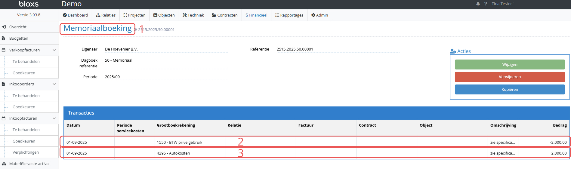 Bloxs heeft geen aparte rubriek 1D. Door een grootboek met btw-code Eigen gebruik te gebruiken, kan het privégebruik toch verwerkt worden in de btw-aangifte.