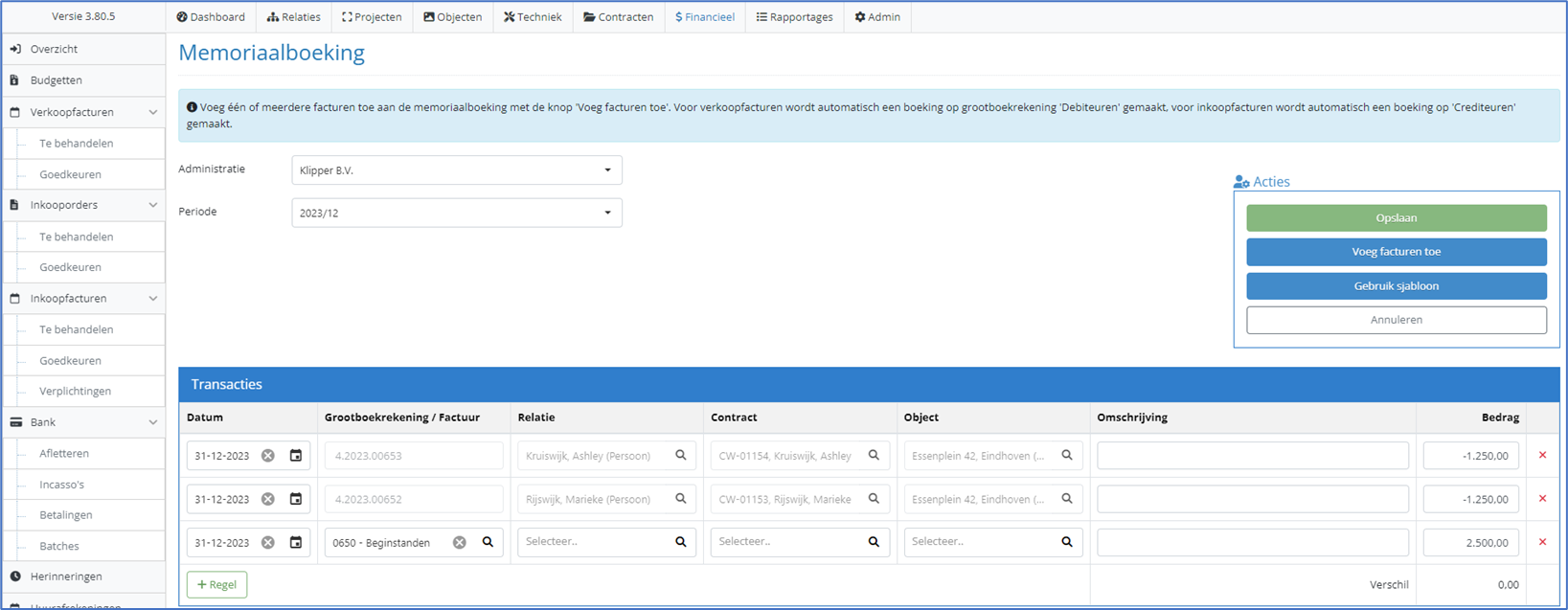 Om deze facturen correct te verwerken, boek je ze handmatig af via een memoriaalboeking.